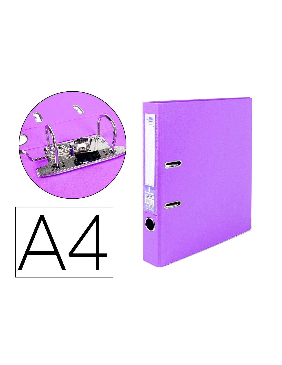 ARCHIVADOR DE PALANCA LIDERPAPEL A4 DOCUMENTA FORRADO PVC CON RADO LOMO 52 MM LILA COMPRESOR METALICO