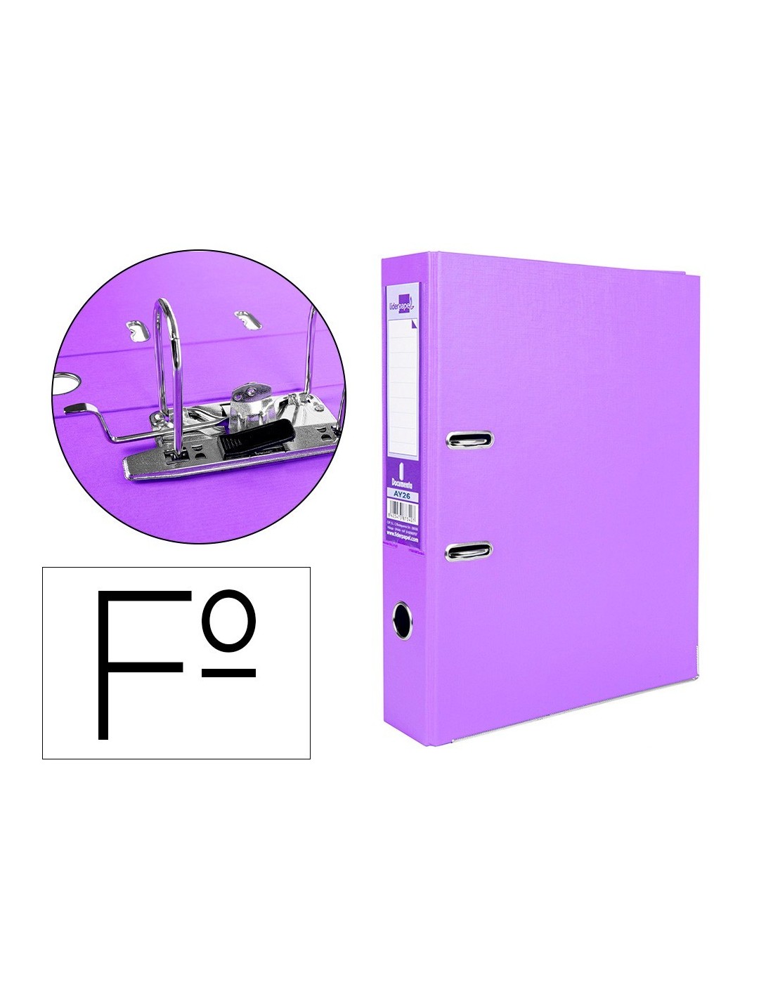 ARCHIVADOR DE PALANCA LIDERPAPEL FOLIO DOCUMENTA FORRADO PVC CON RADO LOMO 75 MM LILA COMPRESOR METALICO