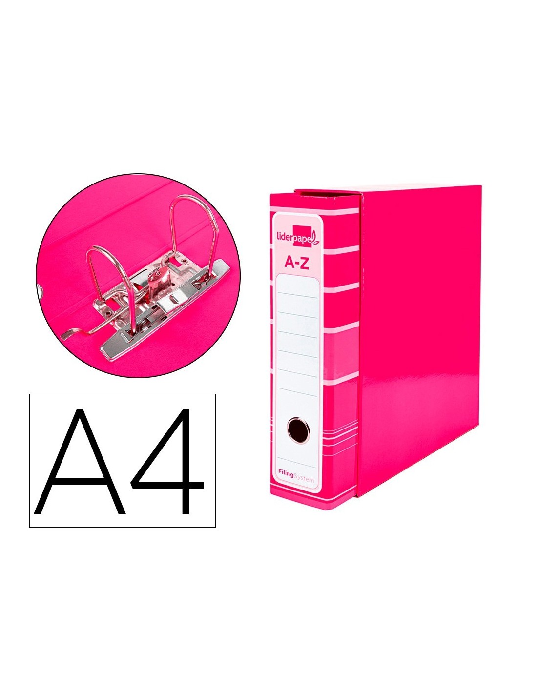 ARCHIVADOR DE PALANCA LIDERPAP EL A4 FILING SYSTEM FORRADO SIN RADO LOMO 80MM ROSA CON CAJA Y COMPRESOR METALICO