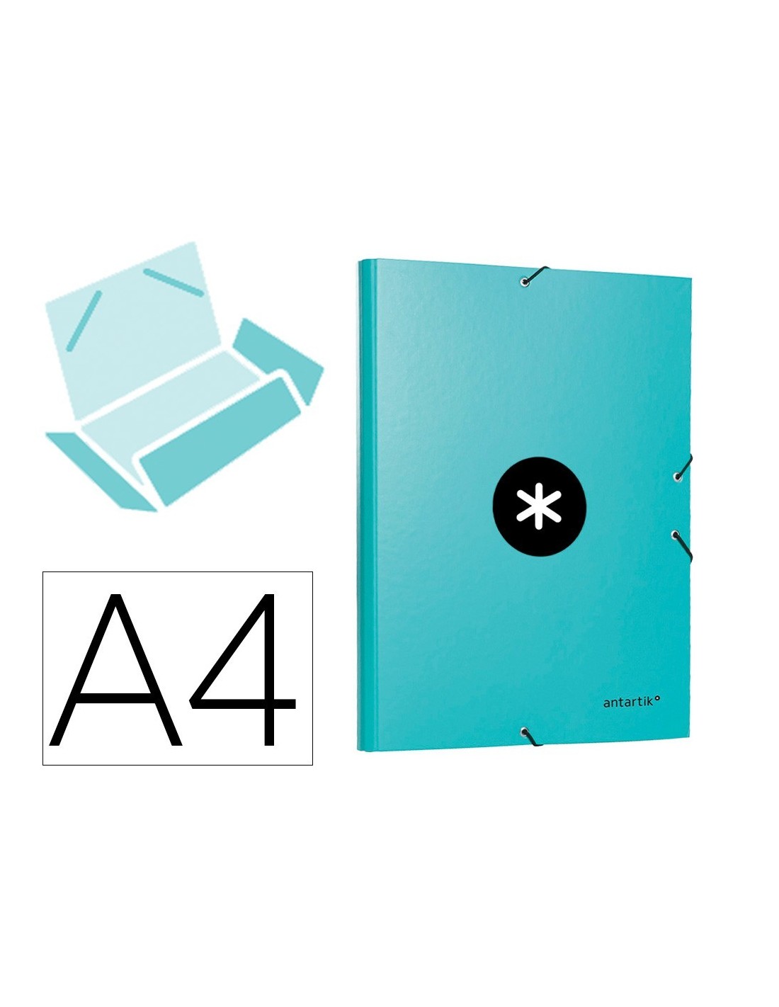 CARPETA LIDERPAPEL ANTARTIK GOMAS A4 3 SOLAPAS CARTON FORRADO COLOR MENTA