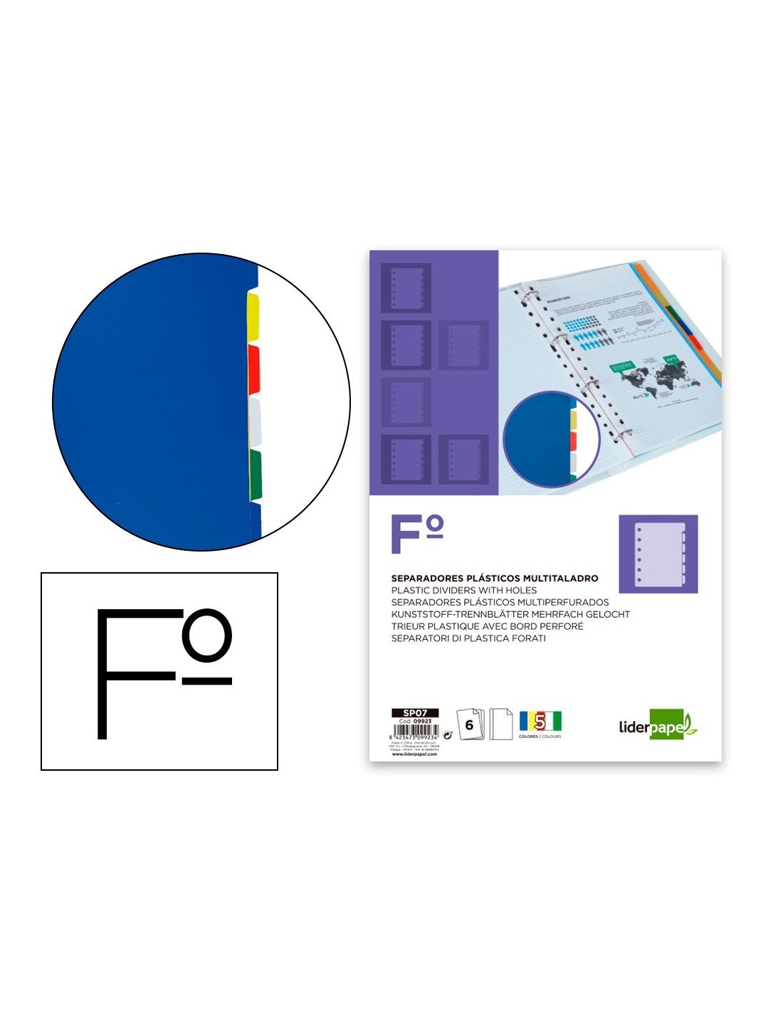 SEPARADOR LIDERPAPEL PLASTICO JUEGO DE 6 SEPARADORES FOLIO 16 TALADROS