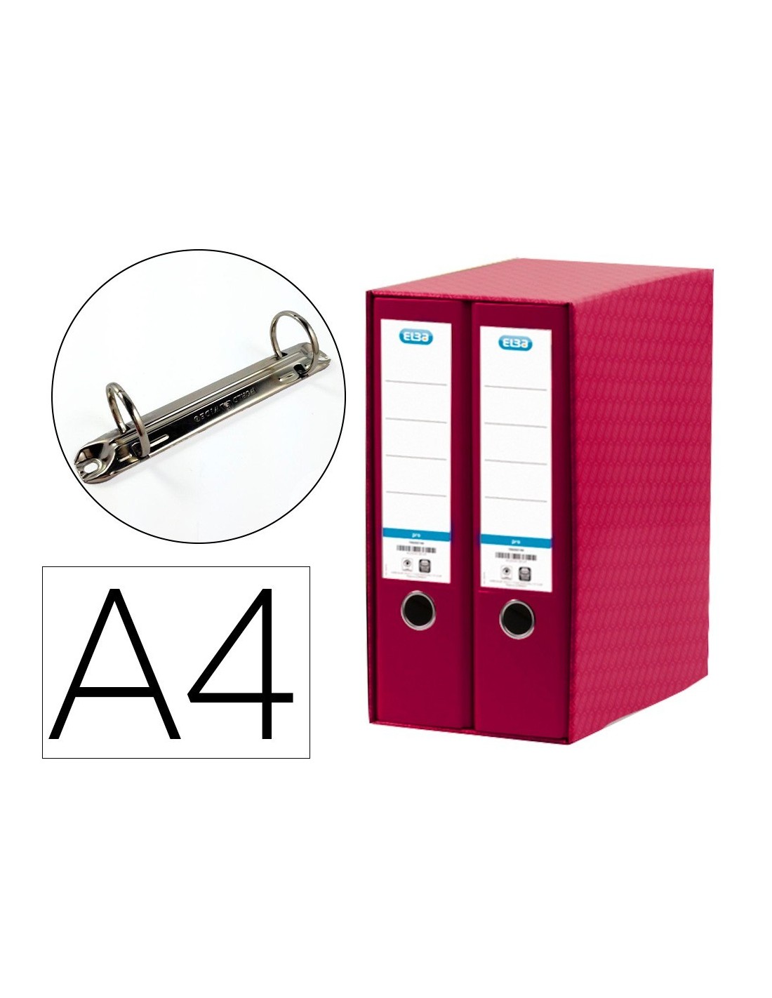 MODULO ELBA 2 ARCHIVADORES DE PALANCA DIN A4 CON RADO 2 ANILLAS ROJO LOMO DE 80 MM