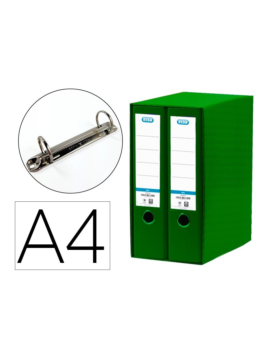 MODULO ELBA 2 ARCHIVADORES DE PALANCA DIN A4 CON RADO 2 ANILLAS VERDE LOMO DE 80 MM