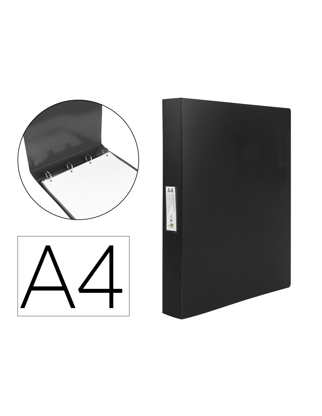 CARPETA LIDERPAPEL 4 ANILLAS 25 MM MIXTAS POLIPROPILENO DIN A4 NEGRO OPACO