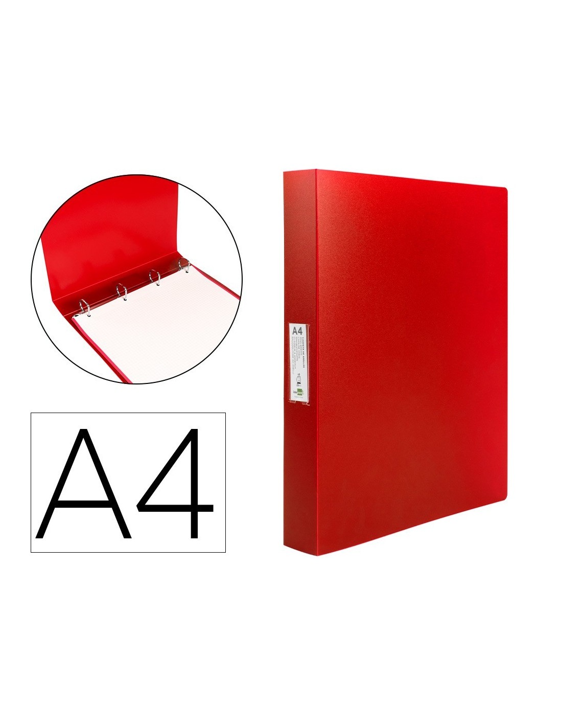 CARPETA LIDERPAPEL 4 ANILLAS 25 MM MIXTAS POLIPROPILENO DIN A4 ROJO TRANSLUCIDO