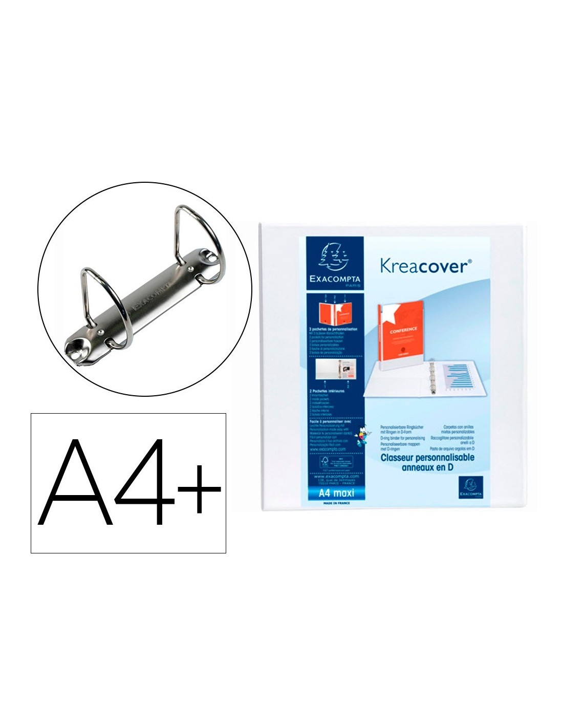 CARPETA EXACOMPTA CANGURO 2 ANILLAS 60 MM DIN A4+ CARTON FORRADO POLIPROPILENO PERSONALIZABLE 3 BOLSILLOS