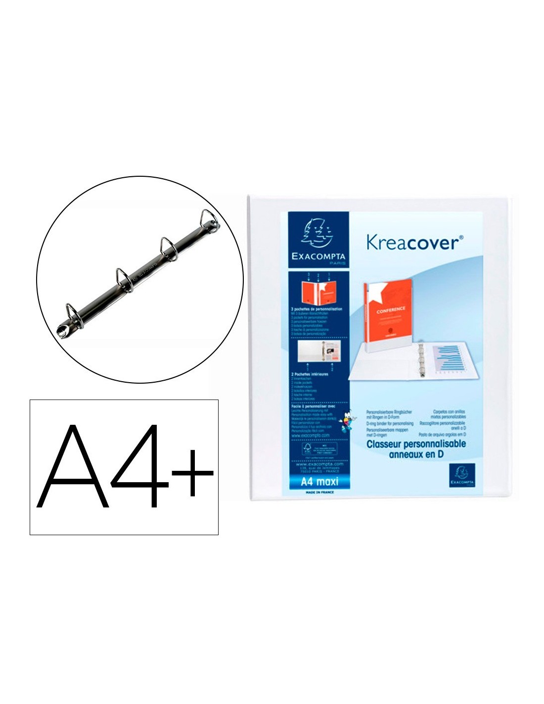 CARPETA EXACOMPTA CANGURO 4 ANILLAS 16 MM DIN A4+ CARTON FORRADO POLIPROPILENO PERSONALIZABLE 3 BOLSILLOS
