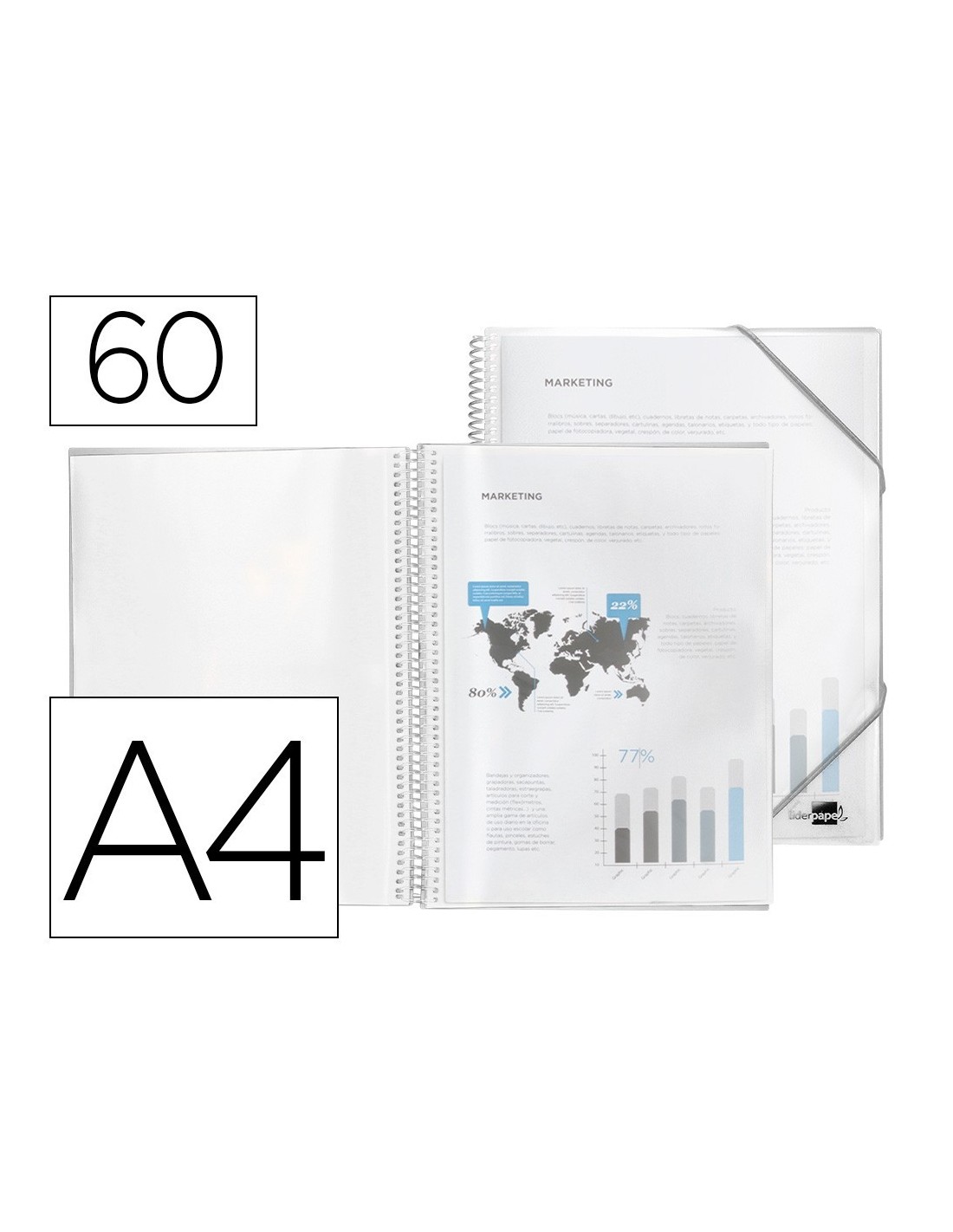 CARPETA LIDERPAPEL ESCAPARATE CON ESPIRAL 60 FUNDAS POLIPROPILENO DIN A4 TRANSPARENTE