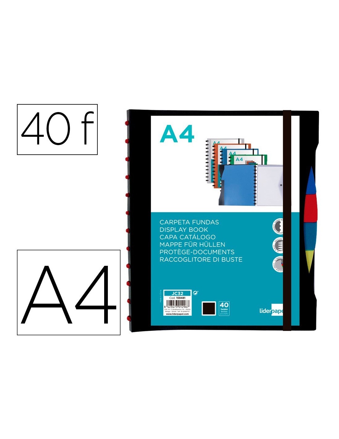 CARPETA LIDERPAPEL A4 CON 40 FUNDAS INTERCAMBIABLES 5 SEP SOBRE Y GOMILLA PORTADA Y LOMO PERSONALIZABLE NEGRO
