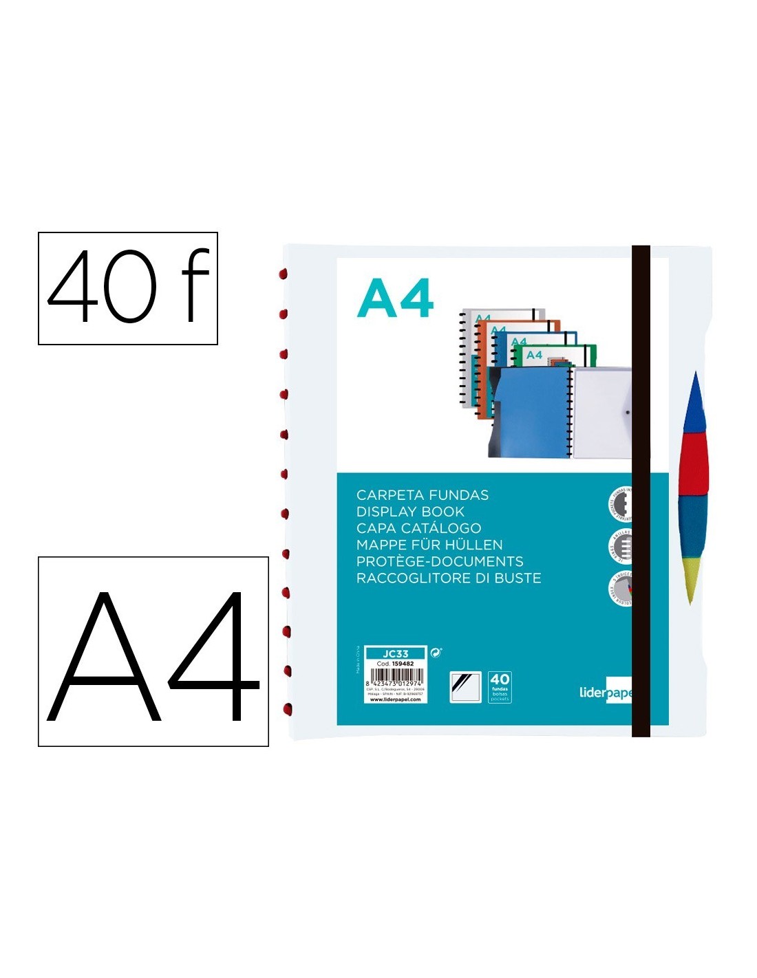 CARPETA LIDERPAPEL A4 CON 40 FUNDAS INTERCAMBIABLES 5 SEP SOBRE Y GOMILLA PORTADA Y LOMOPERSONALIZABLE TRANSPARENTE