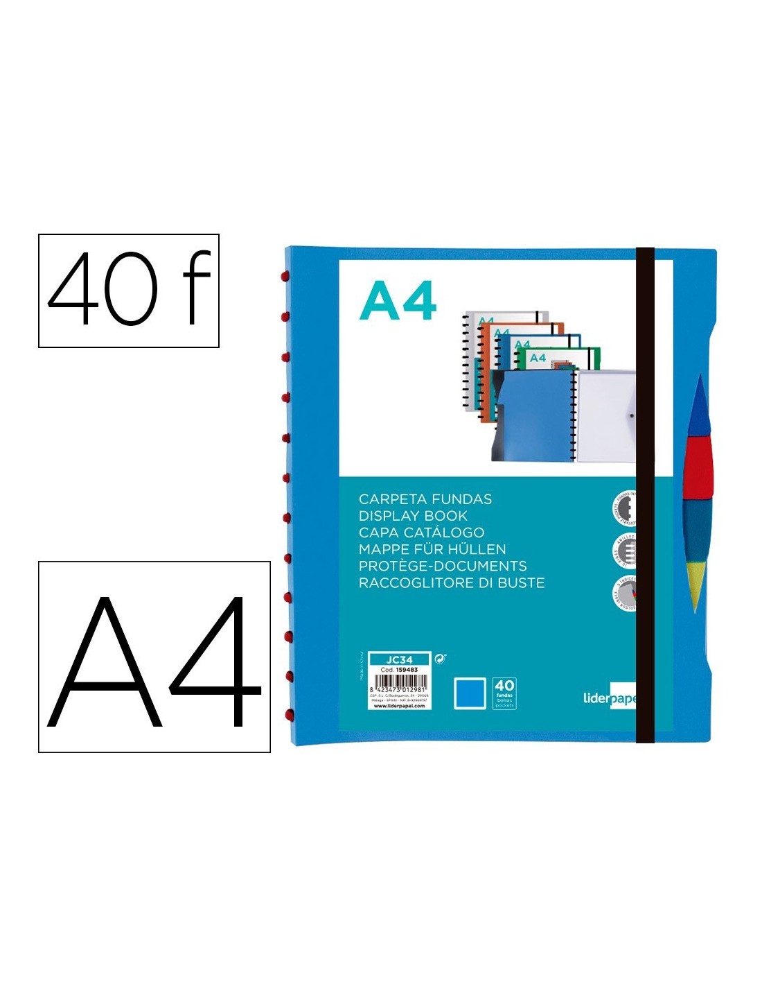 CARPETA LIDERPAPEL A4 CON 40 FUNDAS INTERCAMBIABLES 5 SEP SOBRE Y GOMILLA PORTADA Y LOMO PERSONALIZABLE AZUL