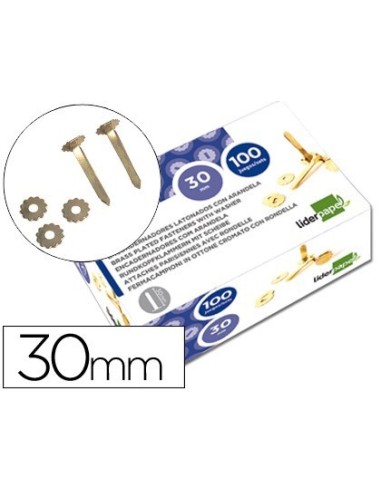 ENCUADERNADORES LIDERPAPEL LATONADOS CON ARANDELA 30 MM CAJA DE 100 UNIDADES