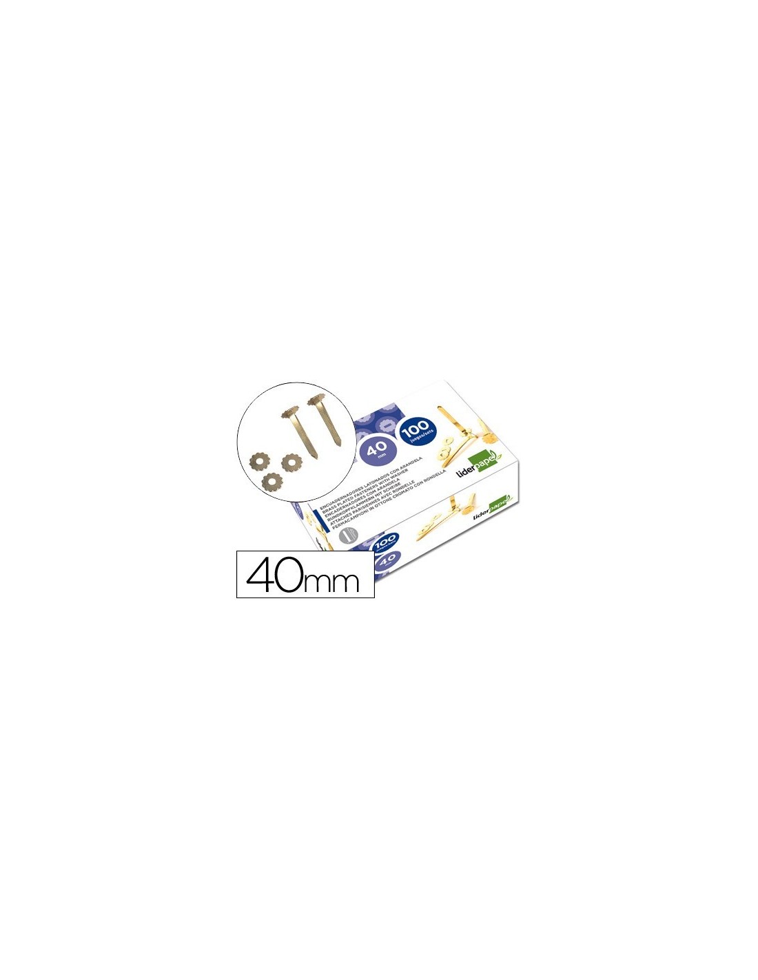ENCUADERNADORES LIDERPAPEL LATONADOS CON ARANDELA 40 MM CAJA DE 100 UNIDADES