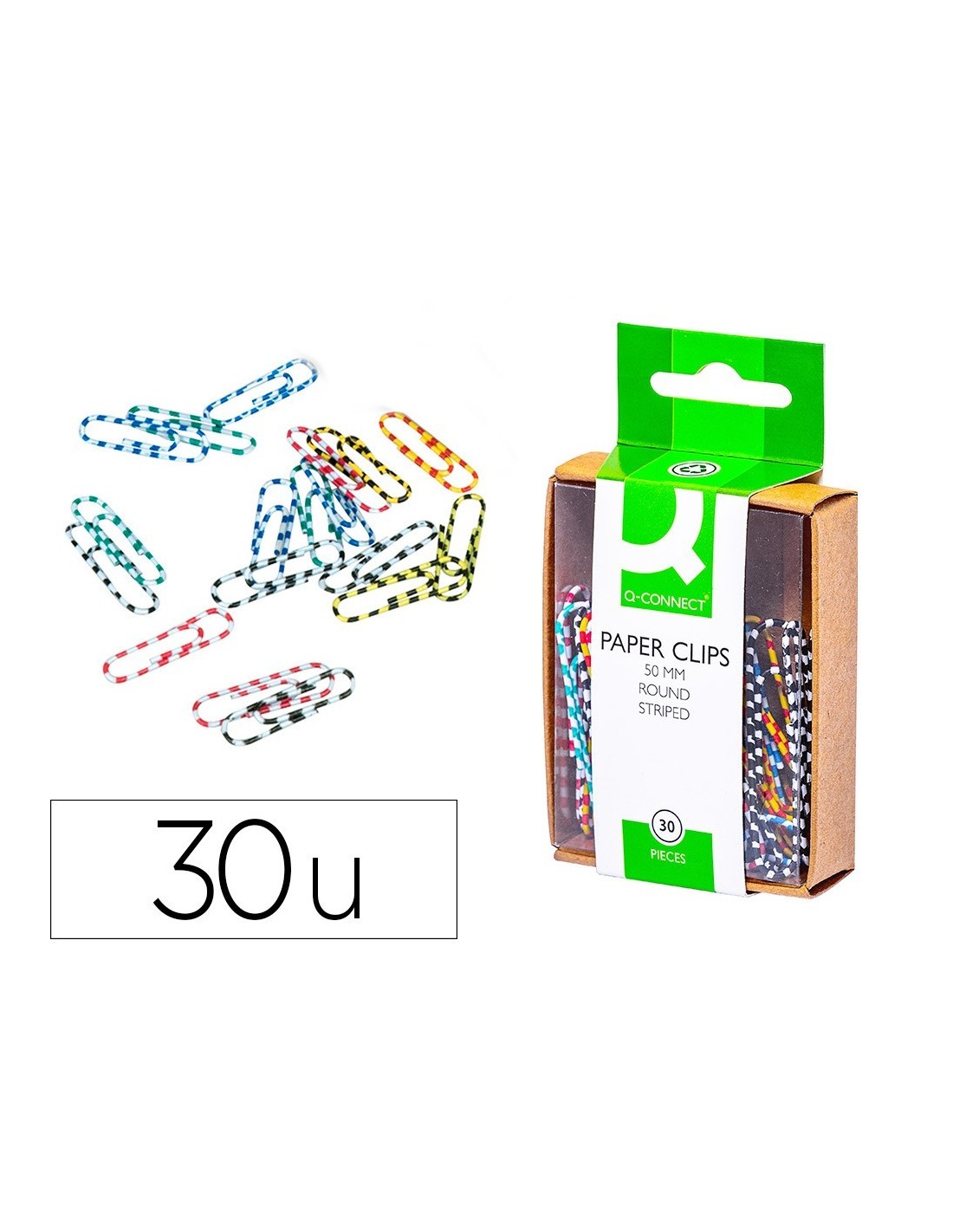 CLIPS COLORES RAYADOS Q-CONNECT 50 MM CAJA DE 30 UNIDADES COLORES SURTIDOS