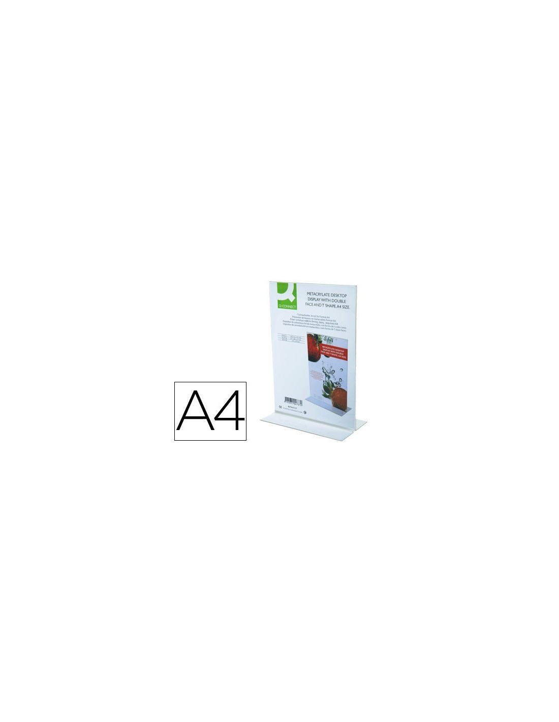 EXPOSITOR SOBREMESA Q-CONNECT CON FORMA DE T METACRILATO TAMAÑO A4 A DOS CARAS