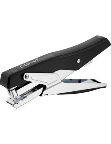 GRAPADORA Q-CONNECT METALIZADA Y NEGRA DE TENAZA TACTO SUAVE CAPACIDAD 25 HOJAS USA GRAPAS 24/6 Y 26/6