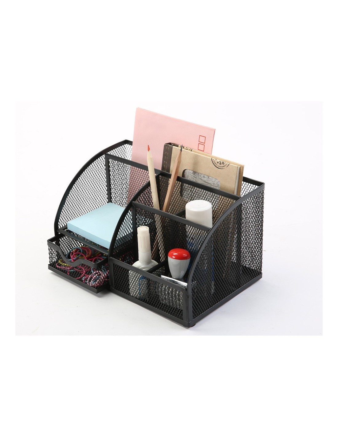 ORGANIZADOR SOBREMESA Q-CONNECT KF17295 METALICO CURVO REJILLA NEGRA CON 5 DEPARTAMENTOS 220X140X130 MM