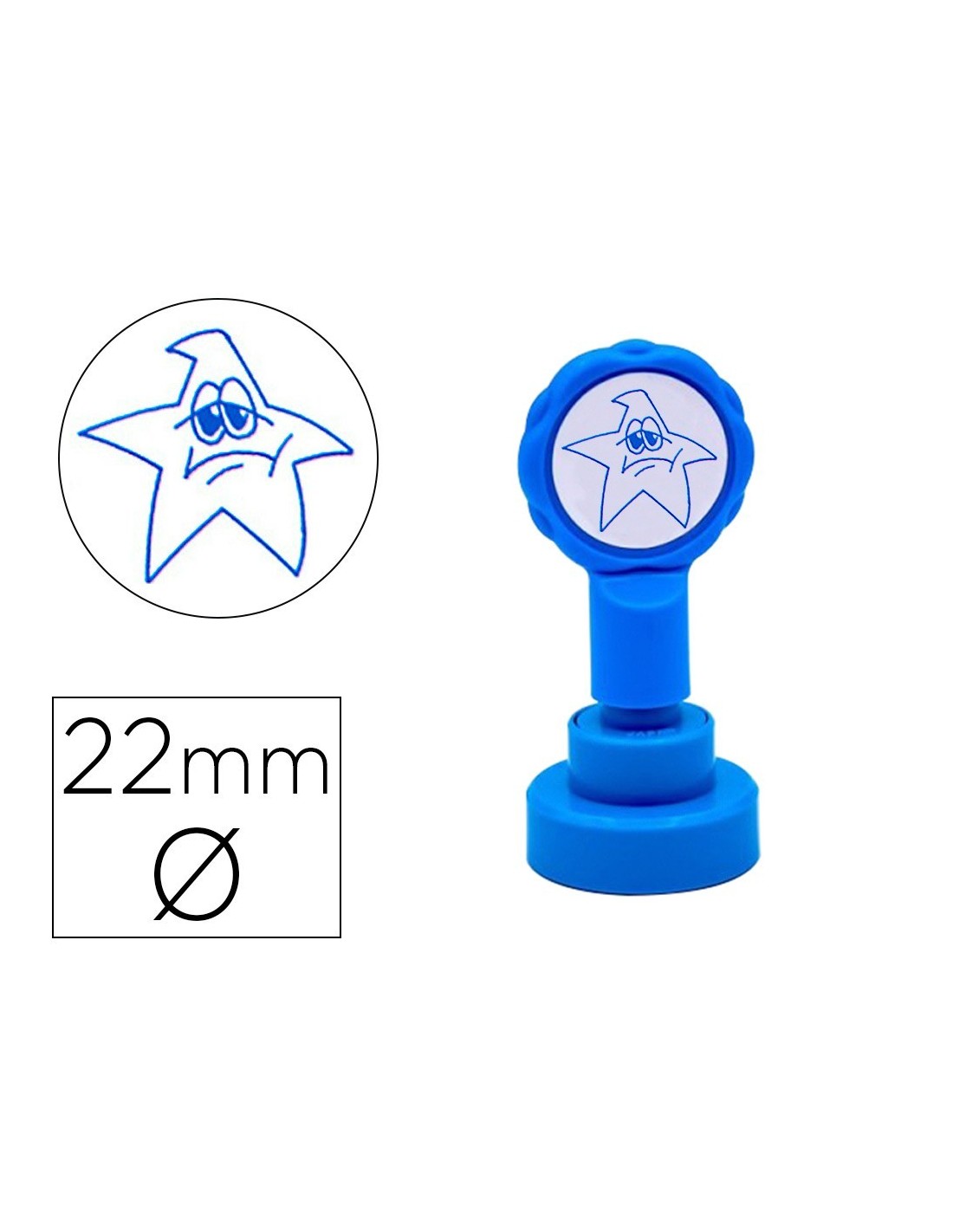 SELLO ARTLINE EMOTICONO ESTRELLA TRISTE COLOR AZUL 22 MM DIAMETRO