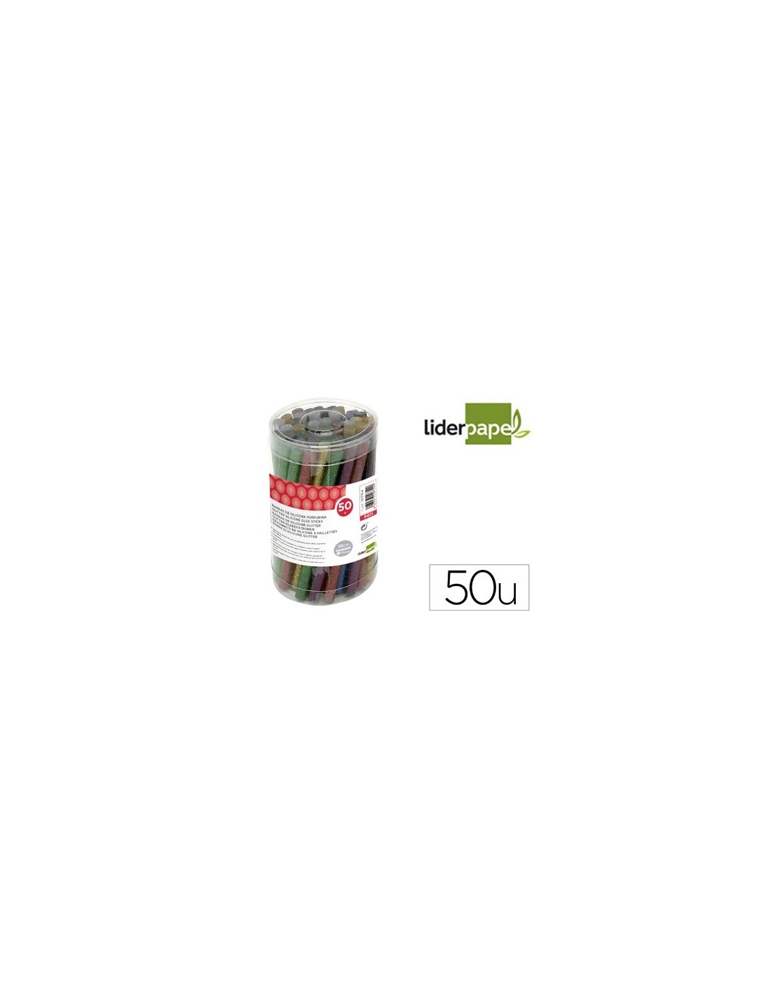 BARRA TERMOFUSIBLE PURPURINA LIDERPAPEL 7 MM DIAMETRO X 100 MM DE ALTO BOTE 50 UNIDADES COLORES SURTIDOS