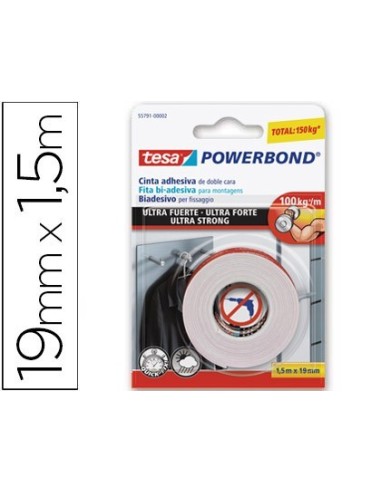 CINTA ADHESIVA TESA DOBLE CARA ULTRA STRONG EXTRAFUERTE PARA INTERIOR Y EXTERIOR 1,5M X19MM