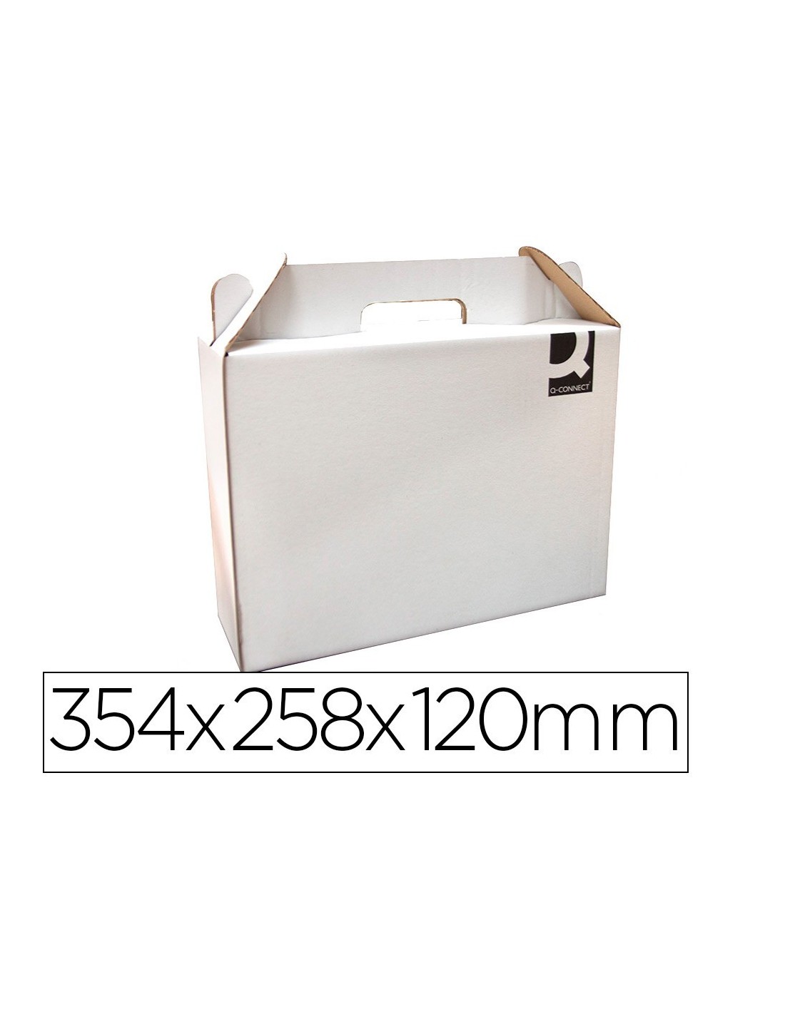 CAJA MALETIN CON ASA Q-CONNECT CARTON PARA ENVIO Y TRANSPORTE 355X120X258 MM