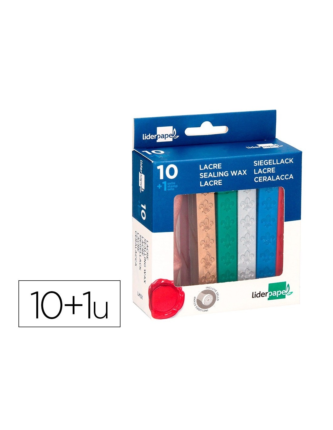LACRE LIDERPAPEL CON SELLO DE CARTA JUEGO DE 10 BARRAS COLORES SURTIDOS