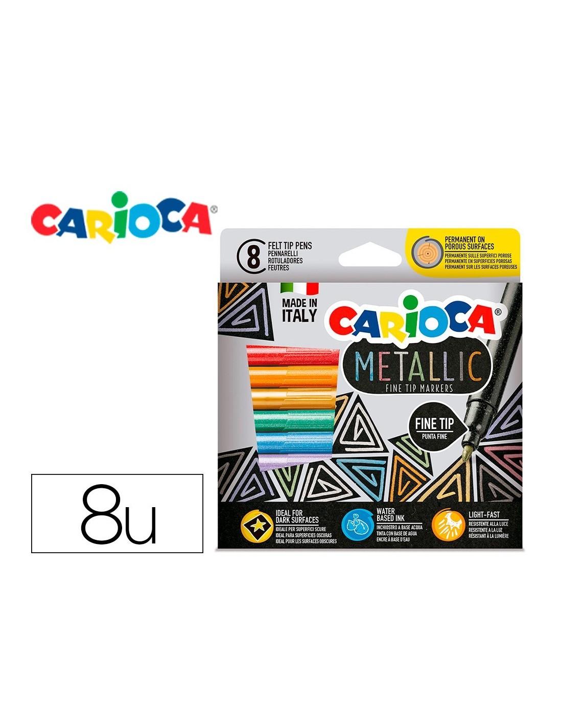 ROTULADOR CARIOCA METALLIC PUNTA FINA CAJA DE 8 COLORES SURTIDOS