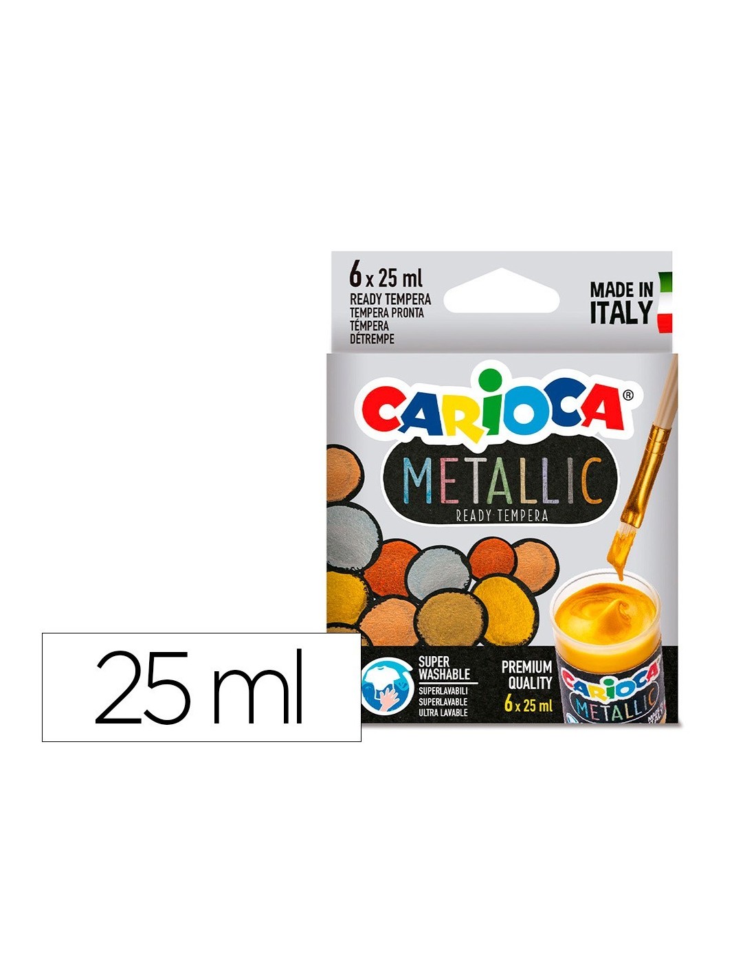 TEMPERA ESCOLAR CARIOCA METALLIC BOTE 25 ML CAJA DE 6 COLORES SURTIDOS