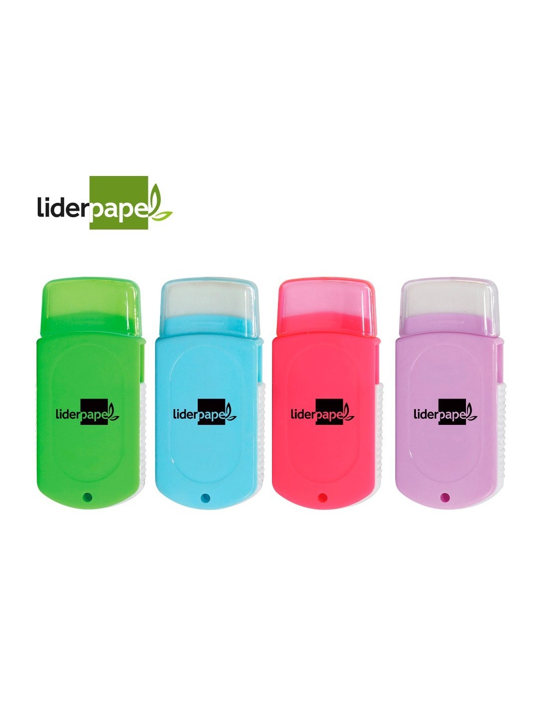 GOMA DE BORRAR LIDERPAPEL RECTANGULAR CON PROTECTOR PLASTICO SACAPUNTAS 2 USOS Y CEPILLO COLORES SURTIDOS