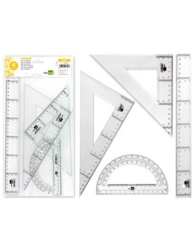 JUEGO ESCUADRA Y CARTABON 25CM REGLA 30CM Y SEMICIRCULO 15CM LIDERPAPEL EN PETACA INCOLORA