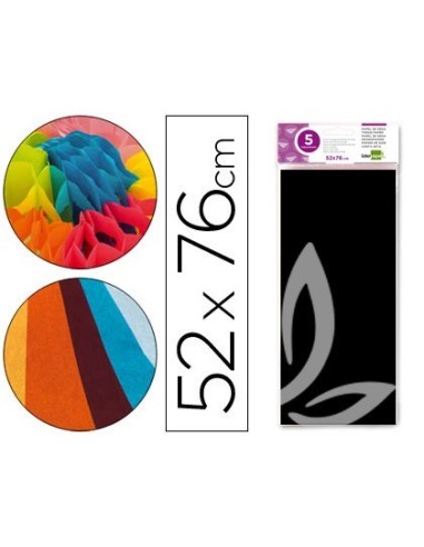 PAPEL SEDA LIDERPAPEL 52X76CM 18G/M2 BOLSA DE 5 HOJAS NEGRO