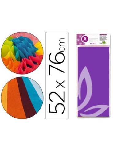 PAPEL SEDA LIDERPAPEL 52X76CM 18G/M2 BOLSA DE 5 HOJAS VIOLETA