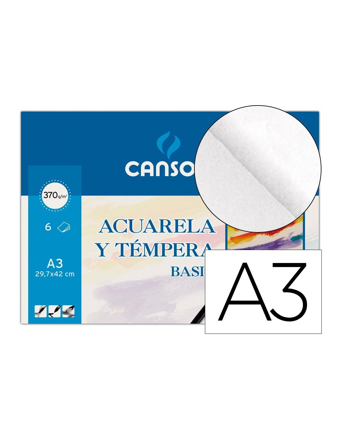 PAPEL ACUARELA BASIK CANSON DIN A3 370 GR PACK DE 6 HOJAS