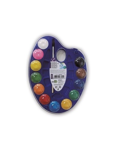ACUARELA LIDERPAPEL 12 COLORES CON PINCEL Y DEPOSITO INCLUYE PALETA DE PLASTICO
