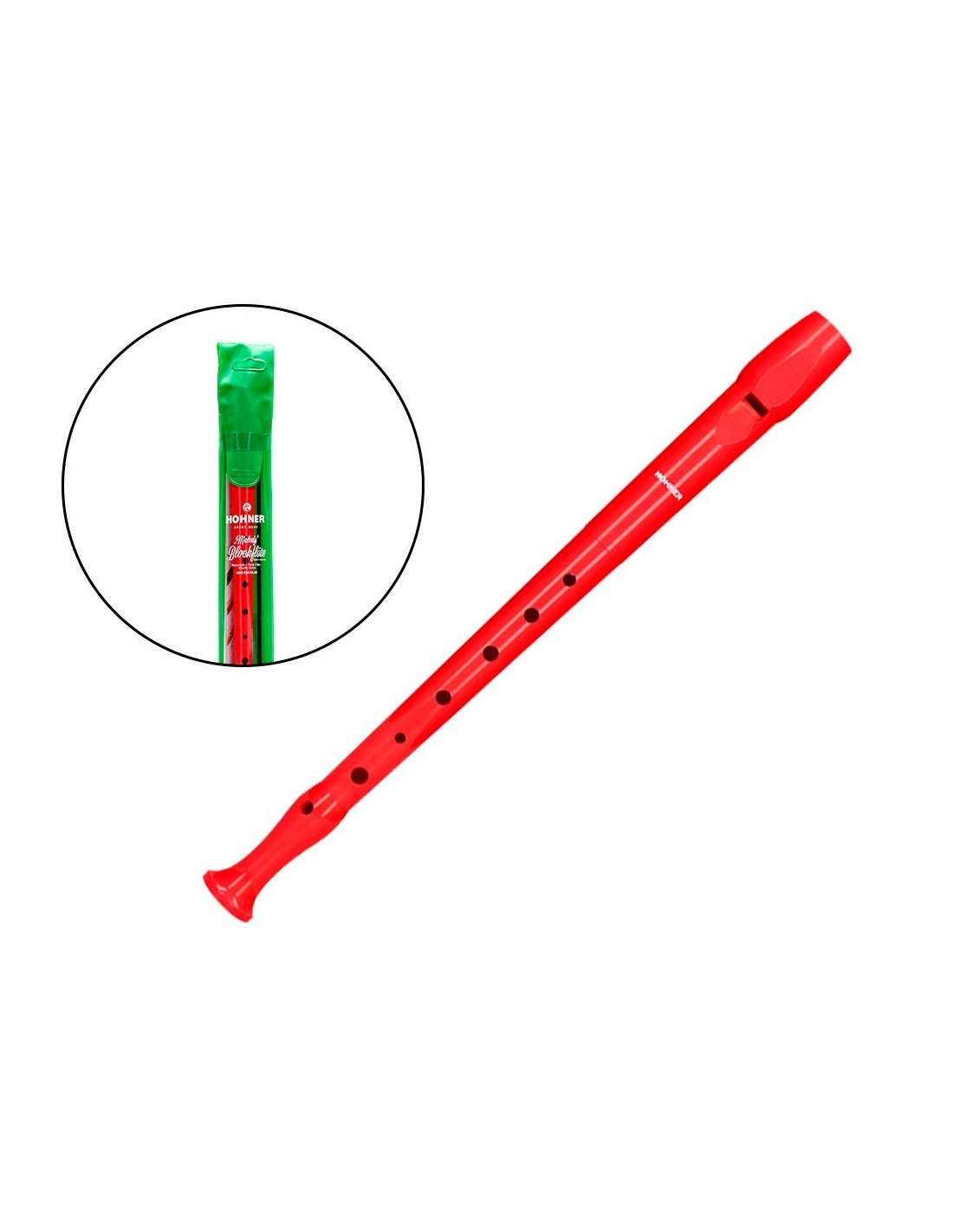FLAUTA HOHNER 9508 COL ROJ FUND VERD Y TRANSP Ver en Cátalogo Pag 716.
