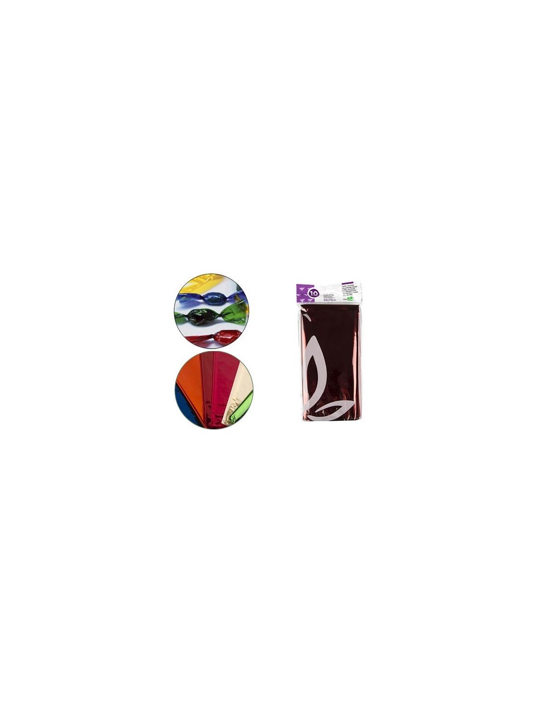 PAPEL CELOFAN LIDERPAPEL 50X70 CM 22G/M2 BOLSA DE 10 HOJAS COLORES SURTIDOS