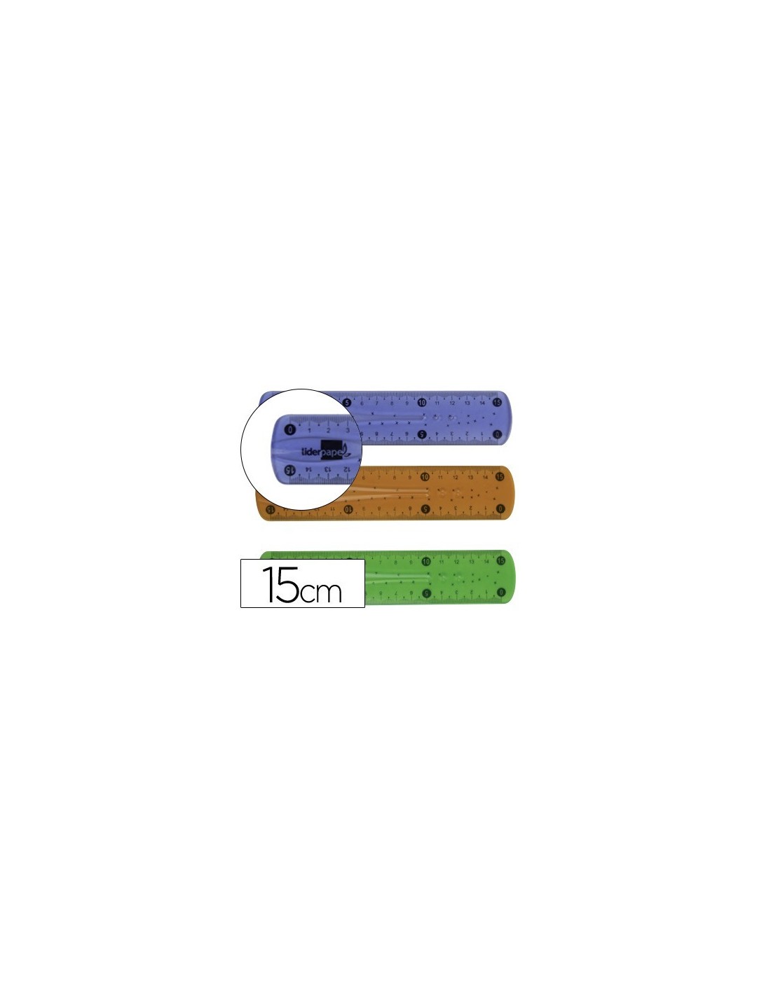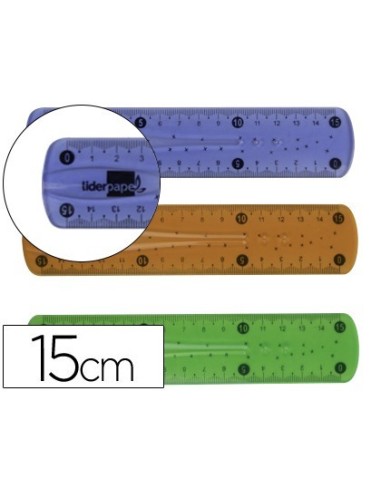 REGLA LIDERPAPEL PLASTICO FLEXIBLE DE 15 CM COLORES SURTIDOS