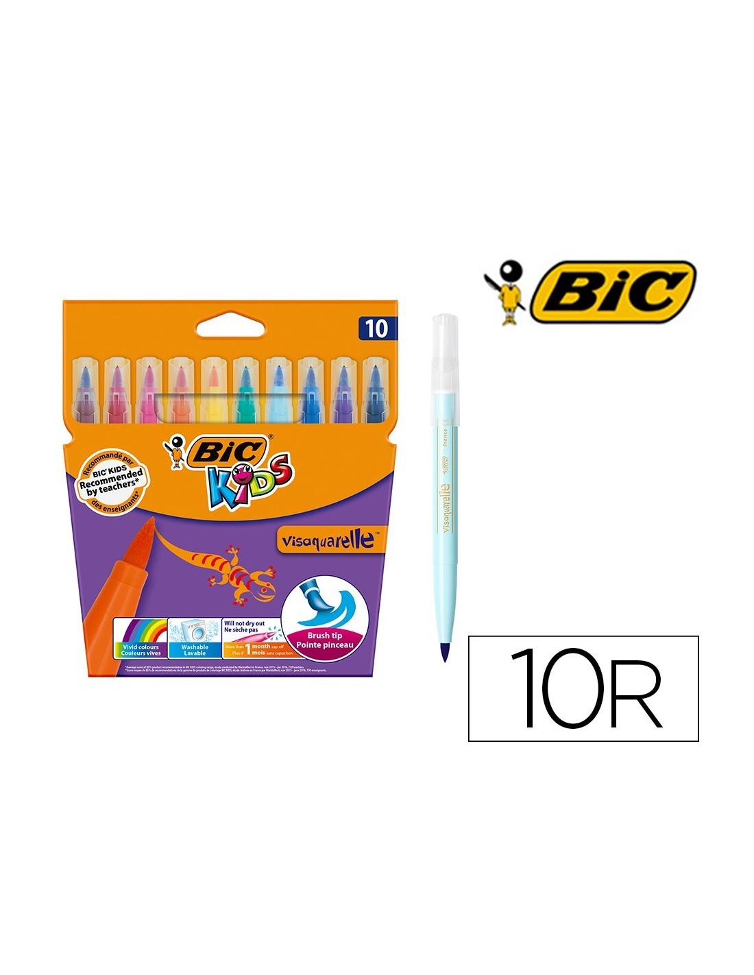 ROTULADOR BIC KIDS VISAQUARELLE ESTUCHE DE 10 COLORES PUNTA PINCEL TINTA BASE DE AGUA