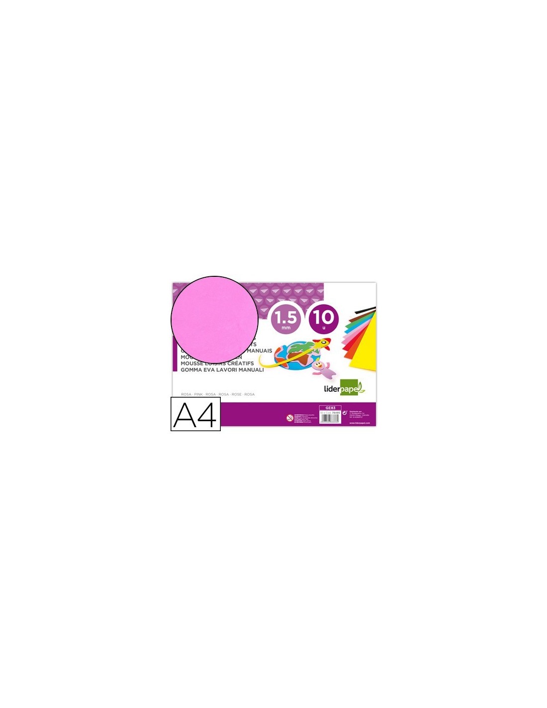 GOMA EVA LIDERPAPEL DIN A4 60G/M2 ESPESOR 1,5MM ROSA PAQUETE DE 10 HOJAS