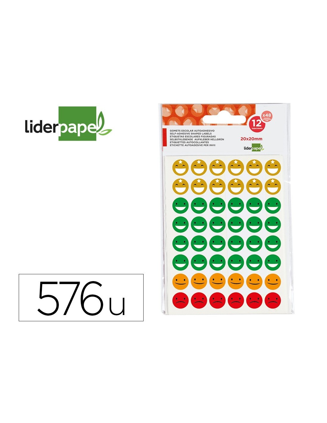 GOMETS ESCOLAR LIDERPAPEL CARAS BOLSA DE 12 HOJAS 48 CARAS POR HOJA COLORES SURTIDOS