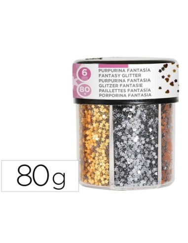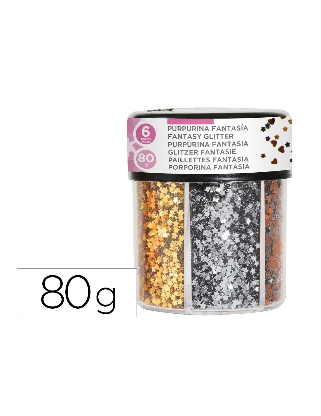 PURPURINA FANTASIA LIDERPAPEL CORAZON Y ESTRELLA COLOR ORO Y PLATA BOTE DE 80GR