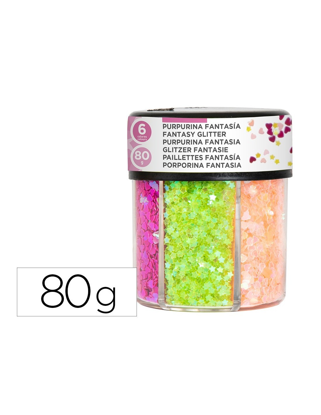 PURPURINA FANTASIA LIDERPAPEL CORAZON Y ESTRELLA COLORES NEON BOTE DE 80GR