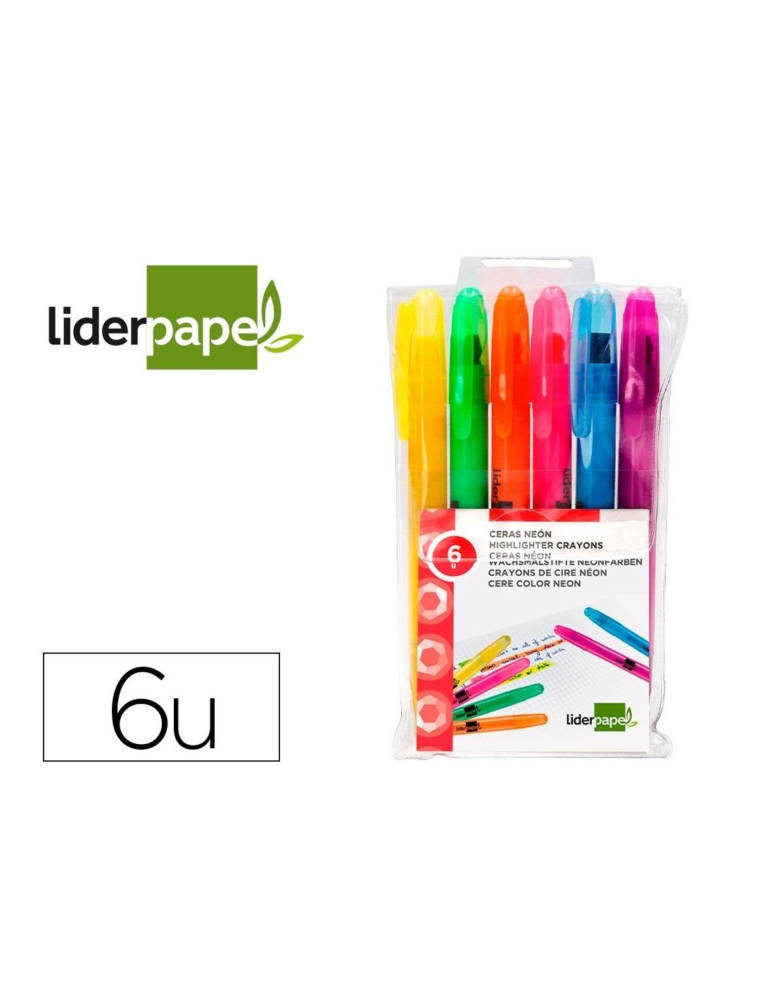 MARCADOR DE CERA GEL LIDERPAPEL FLUORESCENTE ESTUCHE 6 UNIDADES COLORES SURTIDOS