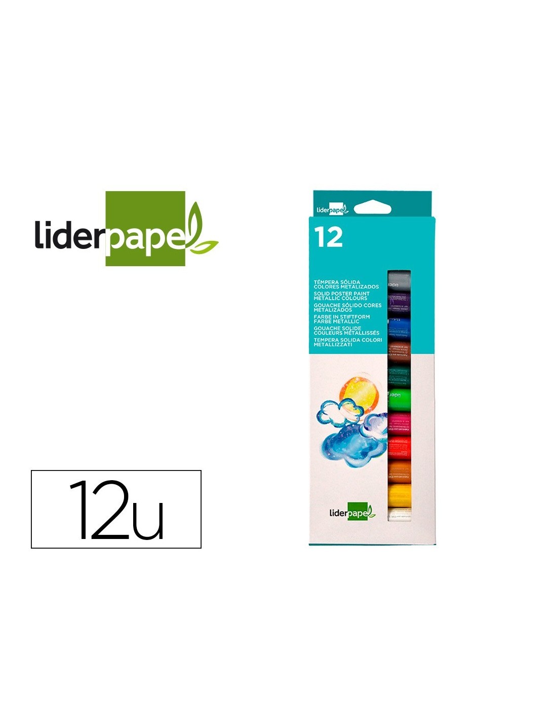 TEMPERA SOLIDA EN BARRA LIDERPAPEL ESCOLAR 10 GR CAJA DE 12 COLORES SURTIDOS