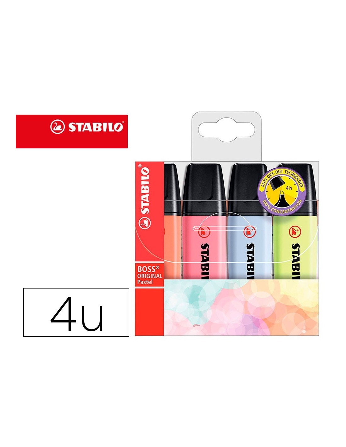 ROTULADOR STABILO BOSS FLUORESCENTE 70 PASTEL ESTUCHE DE 4 UNIDADES COLORES NUEVOS 2021 SURTIDOS