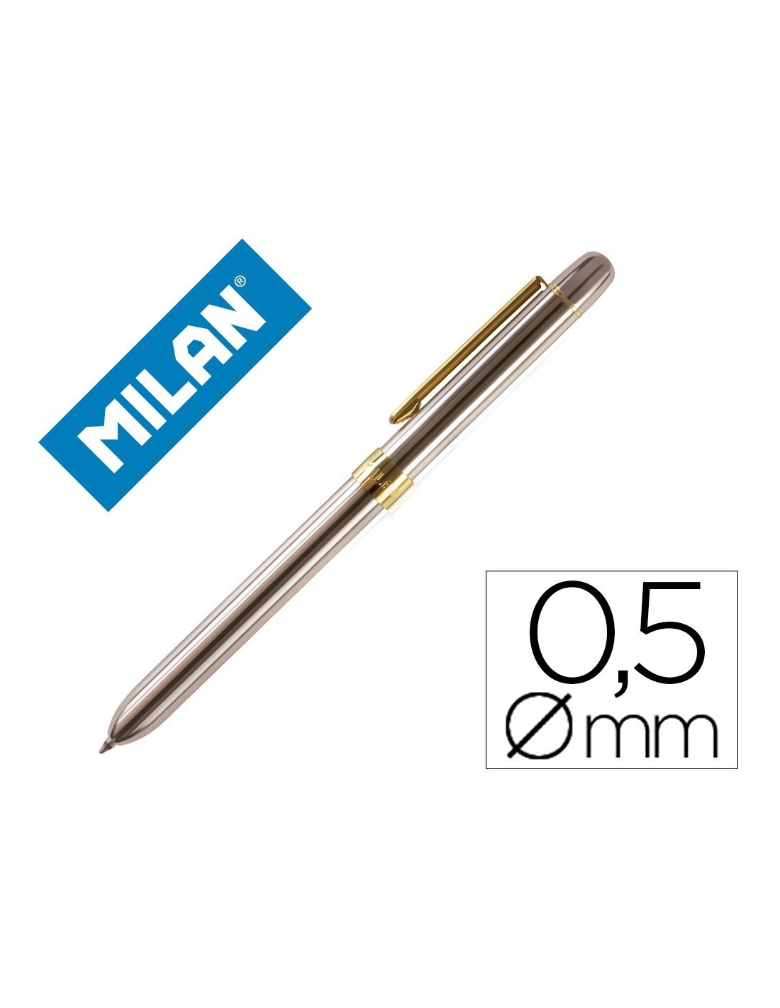 BOLIGRAFO MILAN MULTIFUNCION CROMADO ADORNOS DORADOS AZUL/ROJO/PORTAMINAS 0,5 MM/ GOMA DE BORRAR EN CAJA METAL
