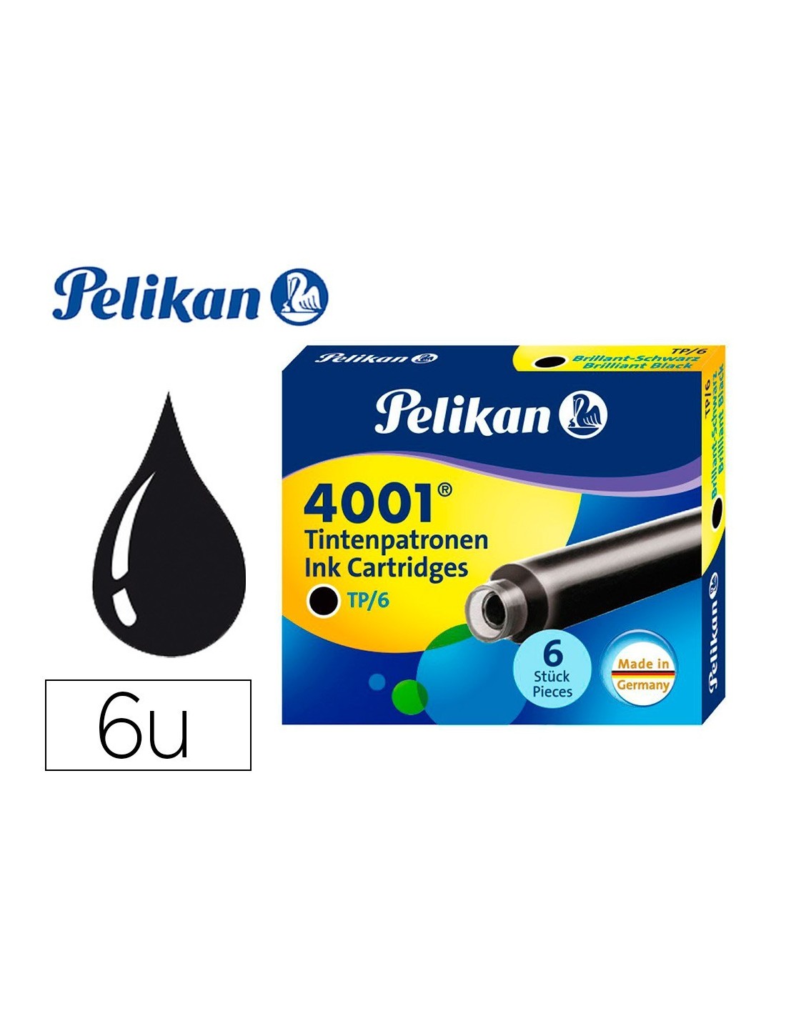 TINTA PARA PLUMAS PELIKAN NEGRA CAJA 6 CARTUCHOS
