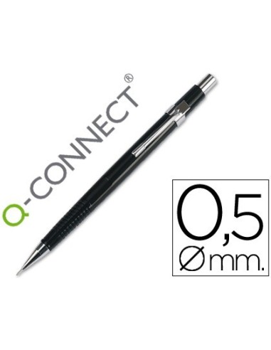 PORTAMINAS Q-CONNECT 0,5 MM CON TRES MINAS CUERPO NEGRO CLIP METALICO