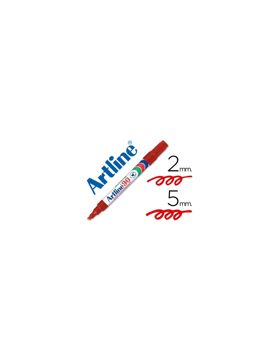 ROTULADOR ARTLINE MARCADOR PERMANENTE EK-90 ROJO PUNTA BISELADA 5 MM PAPEL METAL Y CRISTAL
