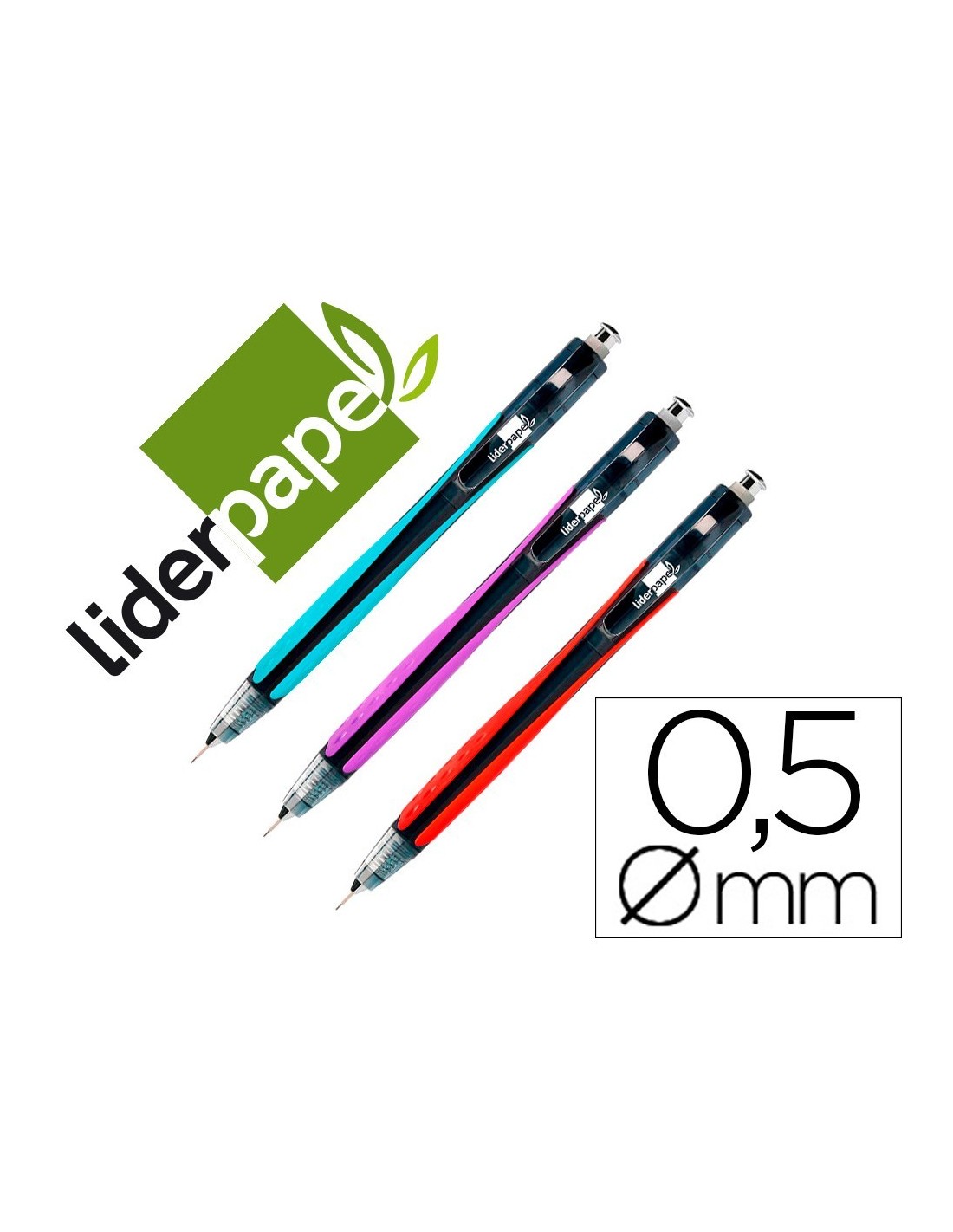 PORTAMINAS LIDERPAPEL 0,5 MM CON PUNTA RETRACTIL Y SUJECIONDE CAUCHO COLORES SURTIDOS